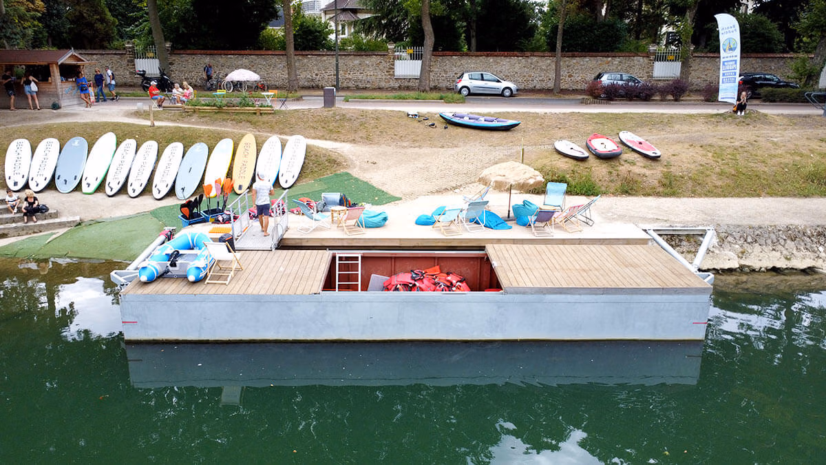 Hansen Marine a conçu, fabriqué et installé un coffre en acier flottant pour le rangement des équipements sportifs et de loisirs du Beach Paddle à St Maur des Fossés (94).