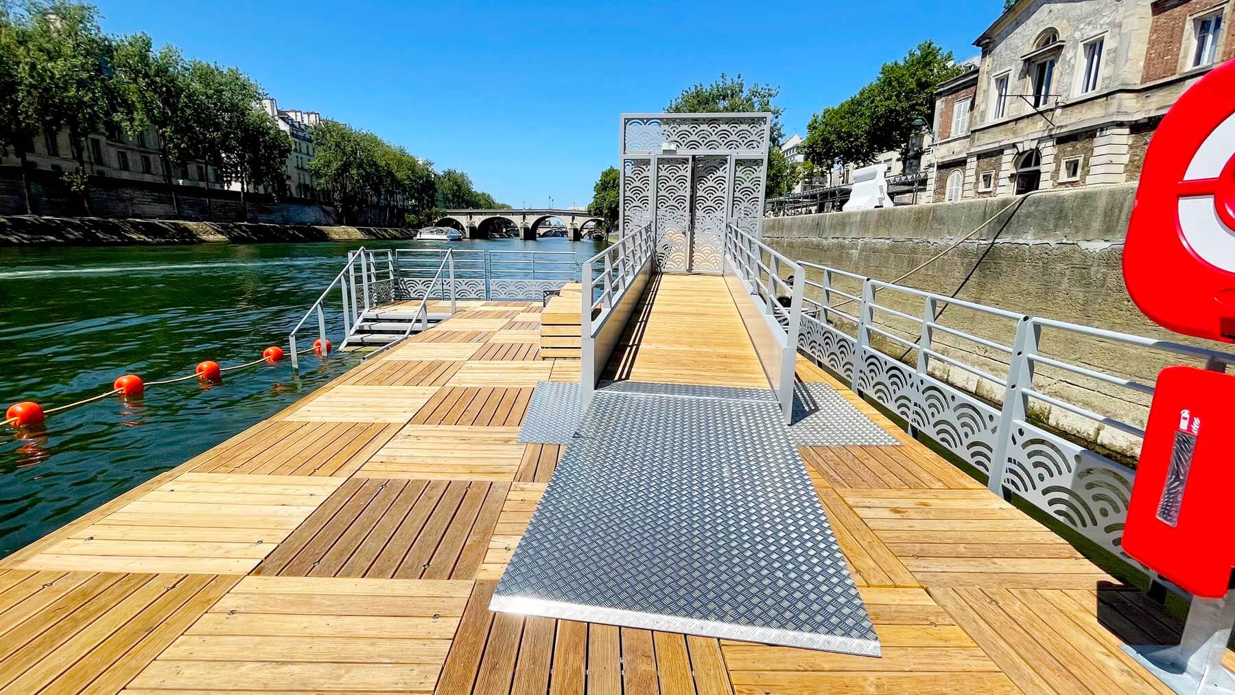 Nos pontons ont déjà fait leurs preuves lors de la 1ère baignade dans la Seine, inaugurée par la Maire de Paris, Madame Hidalgo, en juillet 2024, ainsi que pour les épreuves olympiques au pont Alexandre III !