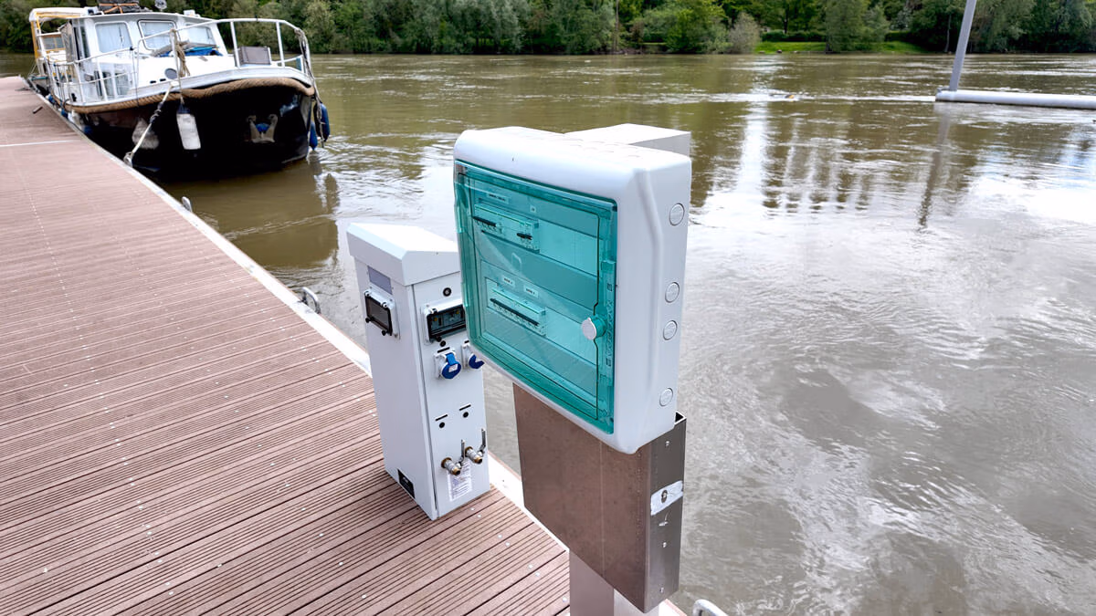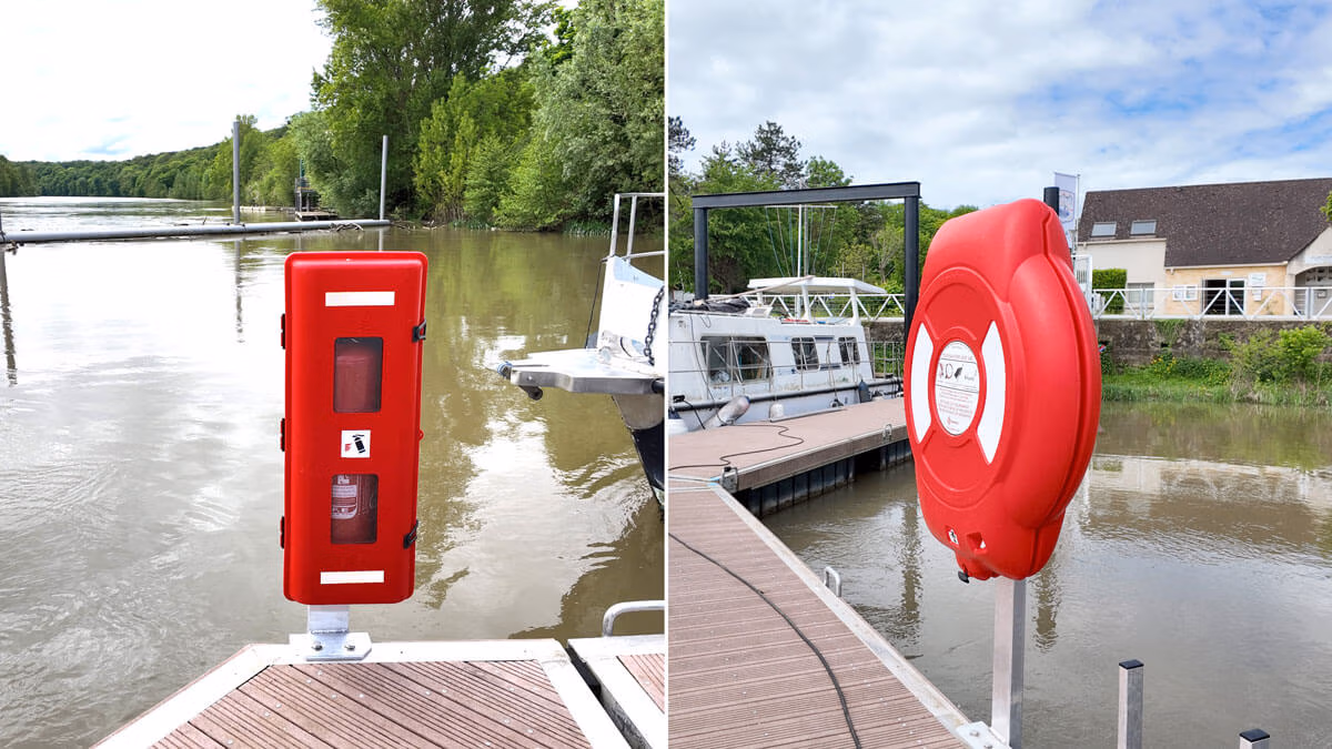 Installation d’équipements essentiels (amarrage, bouées, échelles, bancs, douches, potences PMR, extincteurs).